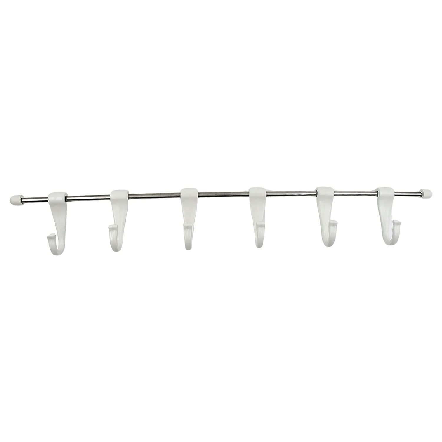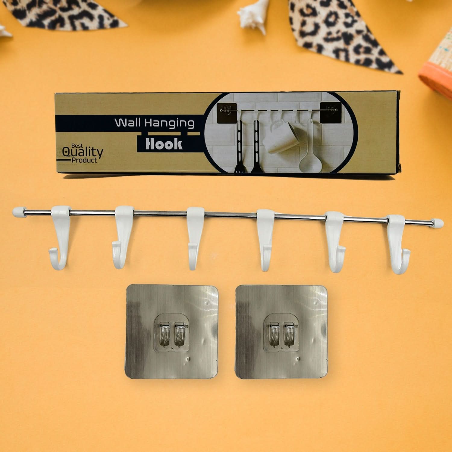 17968 Stainless Steel Utensil Hanger Rail Nail Free Wall Mount with 2 Magic Stickers & 6 Plastic Hooks For Kitchen