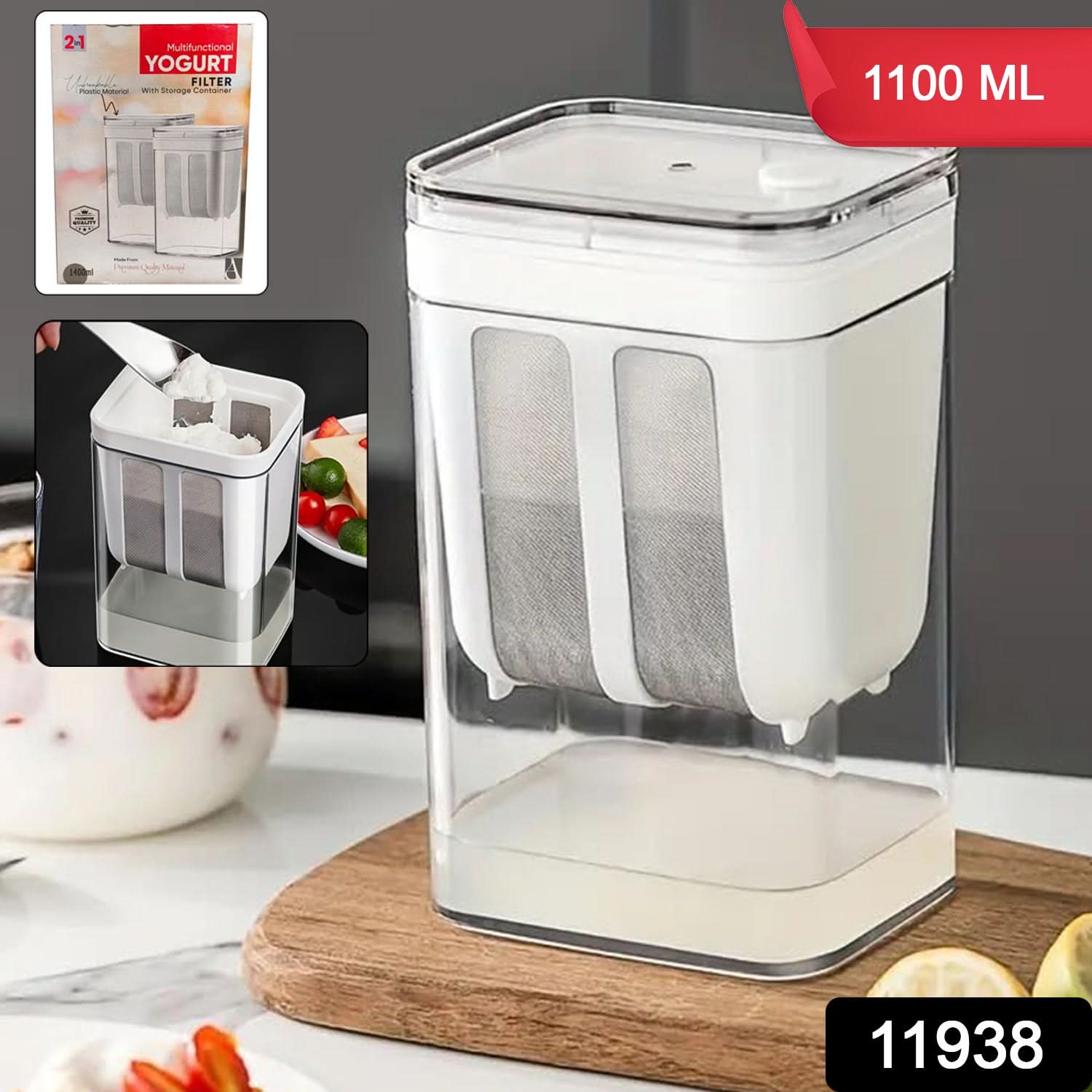 2 in 1 Multifunctional Yogurt Strainer with Storage Container – 1100 ml – Plastic & Stainless Steel Mesh (1 Set)