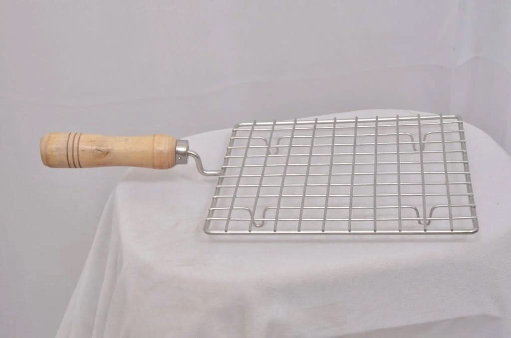 Kitchen Square Stainless Steel Roaster Papad Jali, Barbecue Grill with Wooden Handle