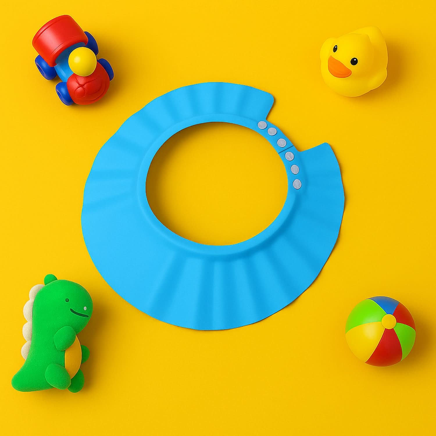 Adjustable Baby Shower Cap – Soft Bathing Shield for Kids | Eye & Ear Protection, Tear-Free Shampoo Hat with Snap Buttons (1 Pc)