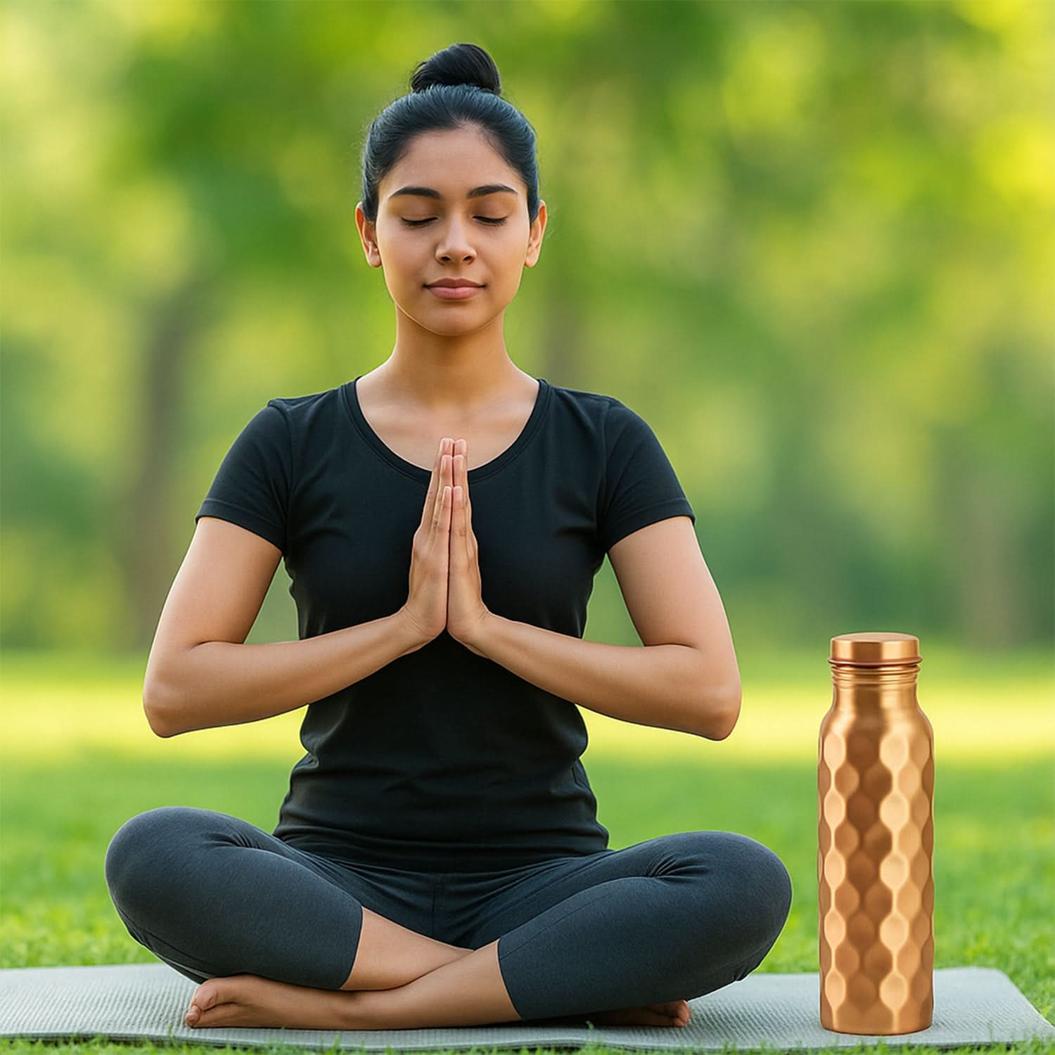 - Benefits:- water stored overnight in copper bottle has ayurvedic health benefits, helps in preventing heart diseases and maintaining cardiovascular health, helps in preventing cancer, regulates the working of the thyroid glands, prevents water-borne diseases, aids in weight loss, helps in regulating women's healthy menstrual periods