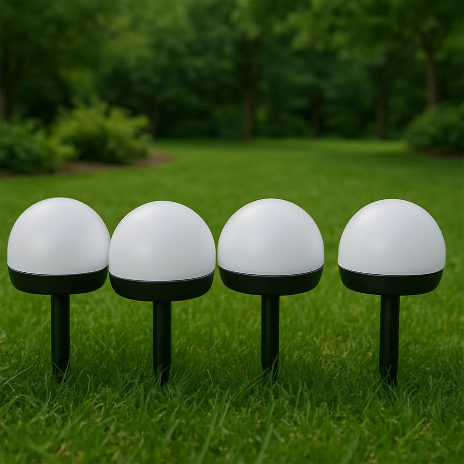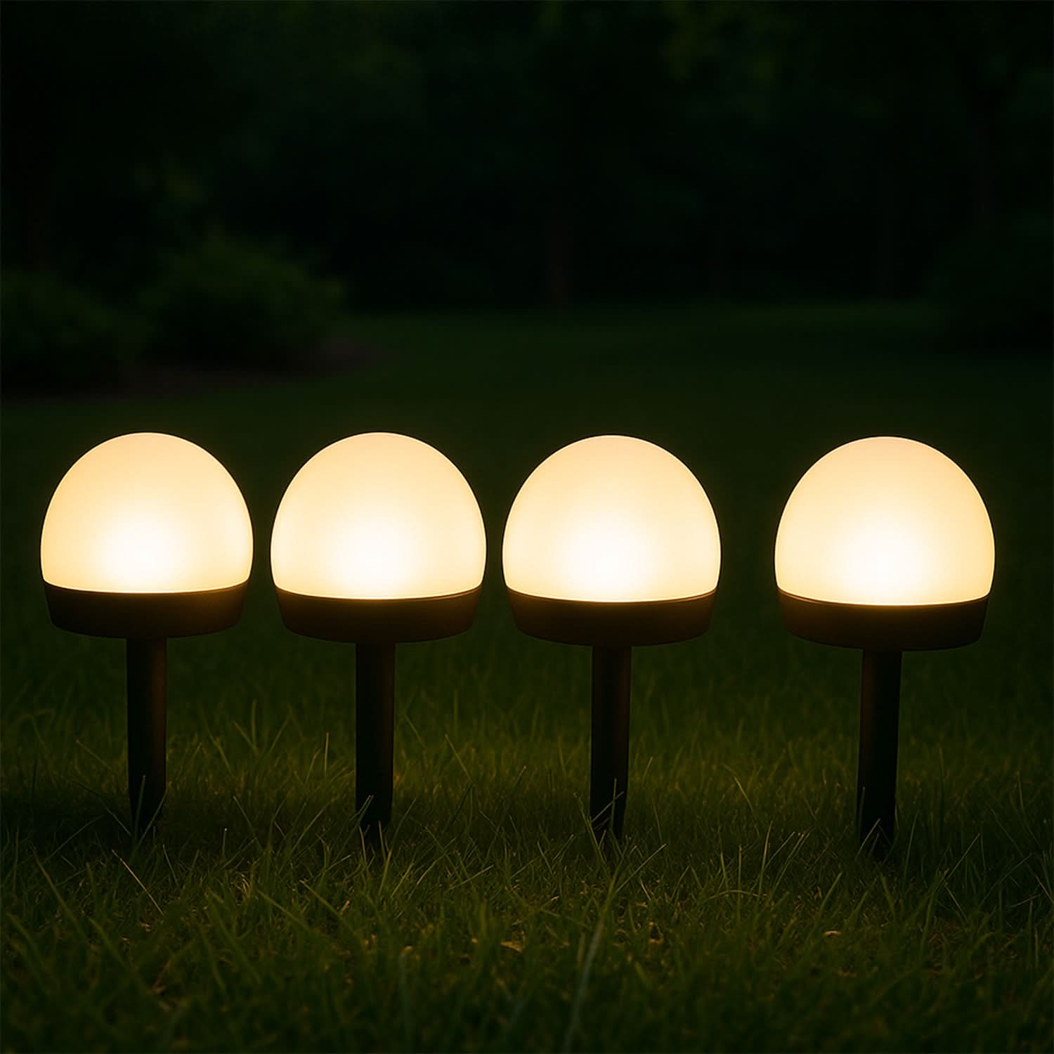 Dome-Shaped LED Lights: Each light features a modern dome cap design that diffuses warm white light uniformly across your garden or yard.