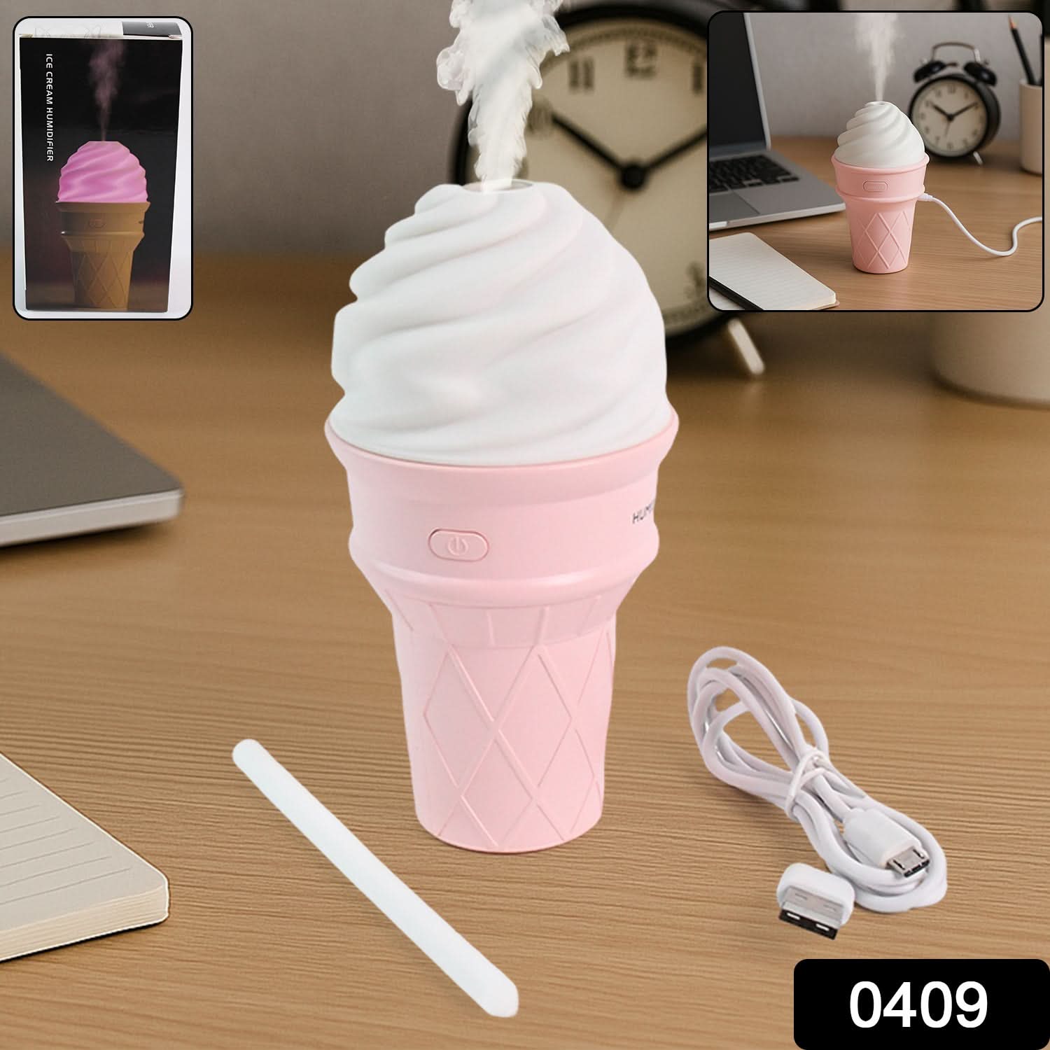 Ice Cream Cone Shape Air Freshener Humidifier | Cool Mist | LED Desktop Nightlight Air Purifier (1Pc / Pink)