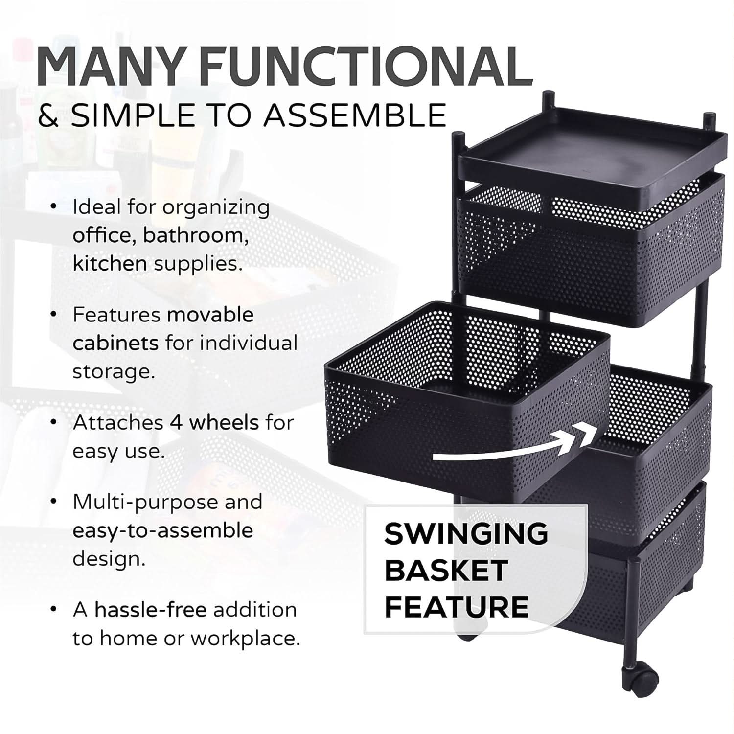 Metal Square High Quality Kitchen Trolley Kitchen Organizer Items and Kitchen Accessories Items for Kitchen Rack Square Design for Fruits & Vegetable Onion Storage Kitchen Trolley with Wheels (4 Layer / 1 Pc)