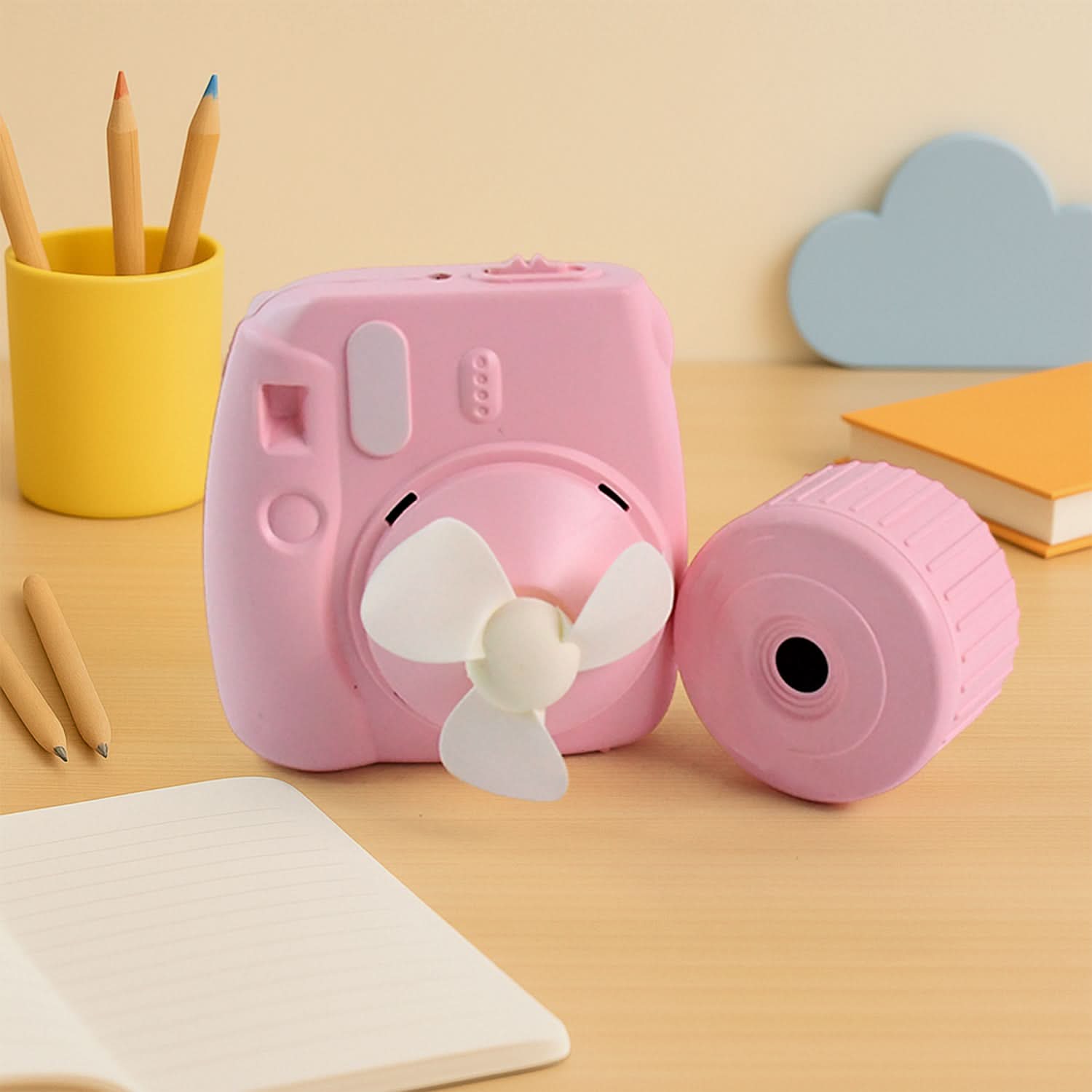 USB Mini Camera-Shaped Fan with Mist Spray Function – Portable Personal Fan Soft Blades for Office, Home, and Travel Use – Adorable Pink Design for Kids & Adults (1 Pc)