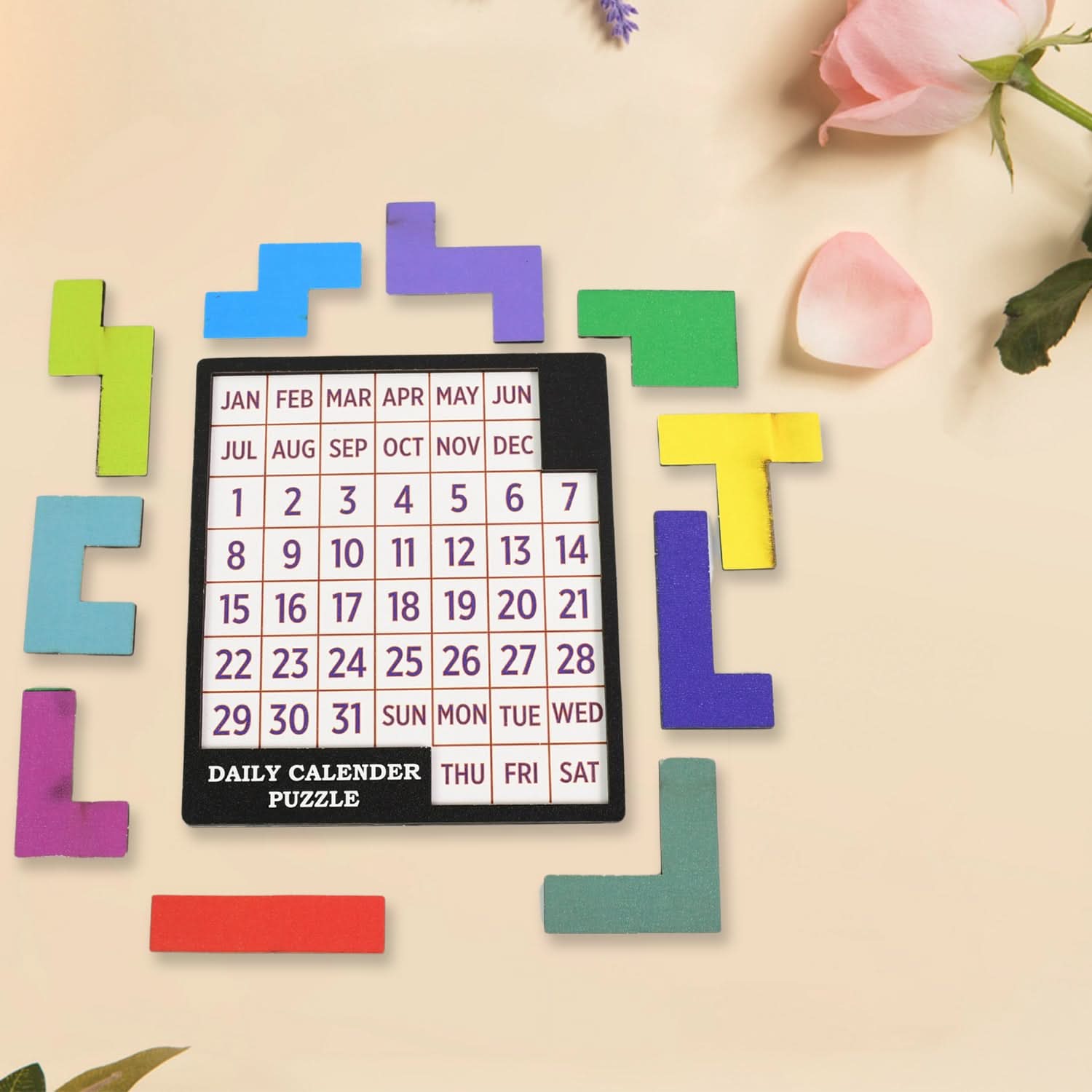 Wooden Daily Calendar Puzzle | A-Puzzle-A-Day | Wooden Challenging Puzzle for Kids & Adults for Every Day Every Year Fit for Office Home Decor School Desktop Coffee Table Gift for Children (Multicolor / 1 Set)